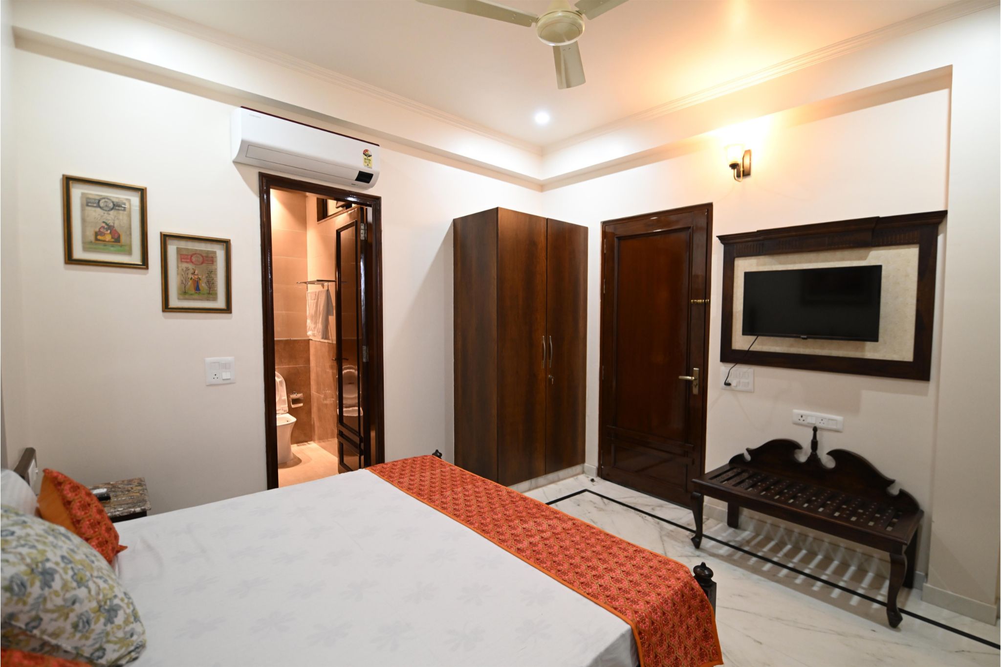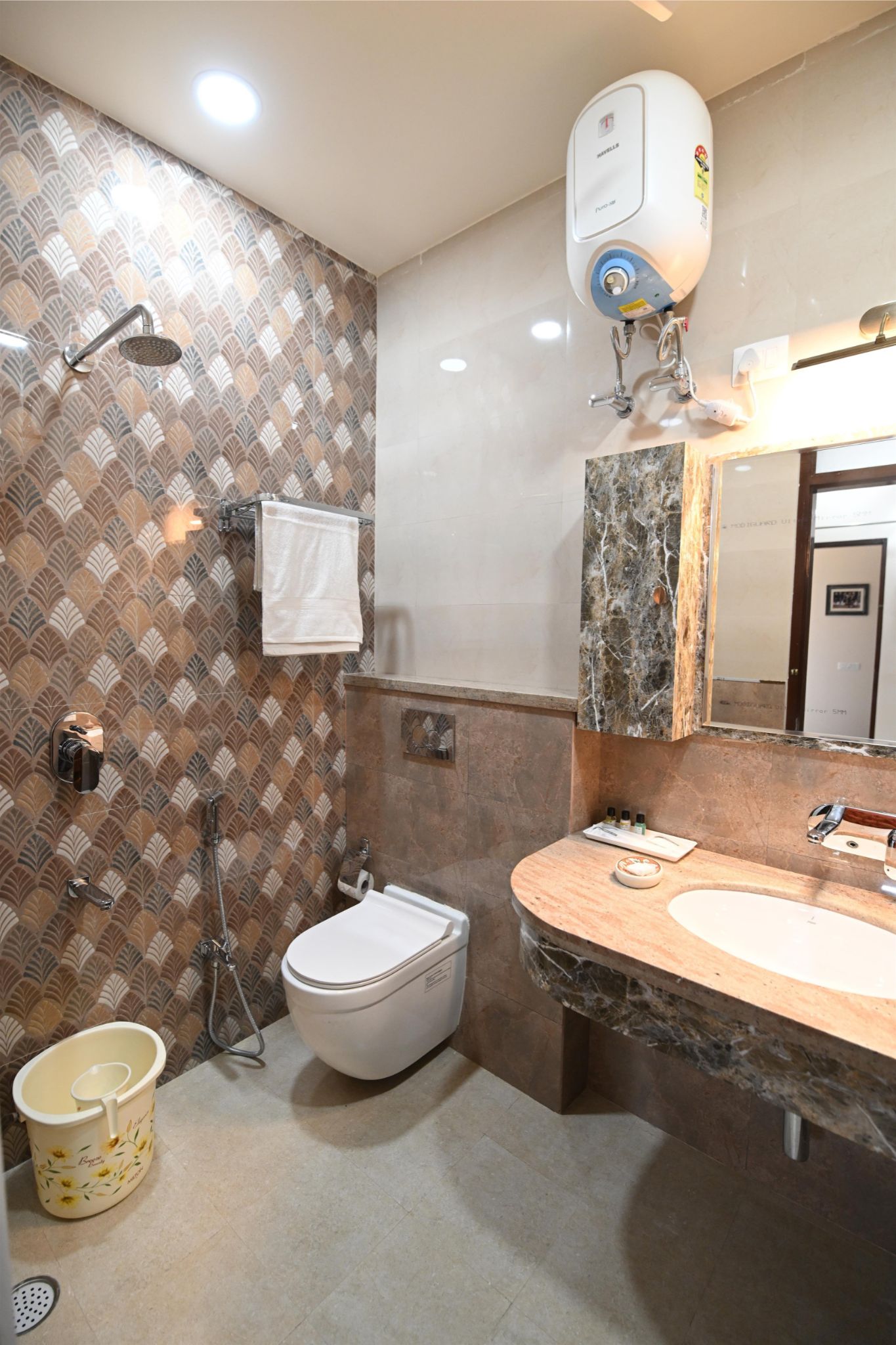 Hotel RoomsThe Two Room Suite offers an expansive and luxurious experience. It features a separate bedroom and living area, along with a full kitchen equipped with modern appliances. The suite is designed with contemporary decor and provides amenities such as flat-screen TVs, high-speed internet, and a spacious work desk. Ideal for extended stays, it ensures a comfortable and convenient home-like atmosphere with premium toiletries in the stylish bathroom.₹ 4,500 per night