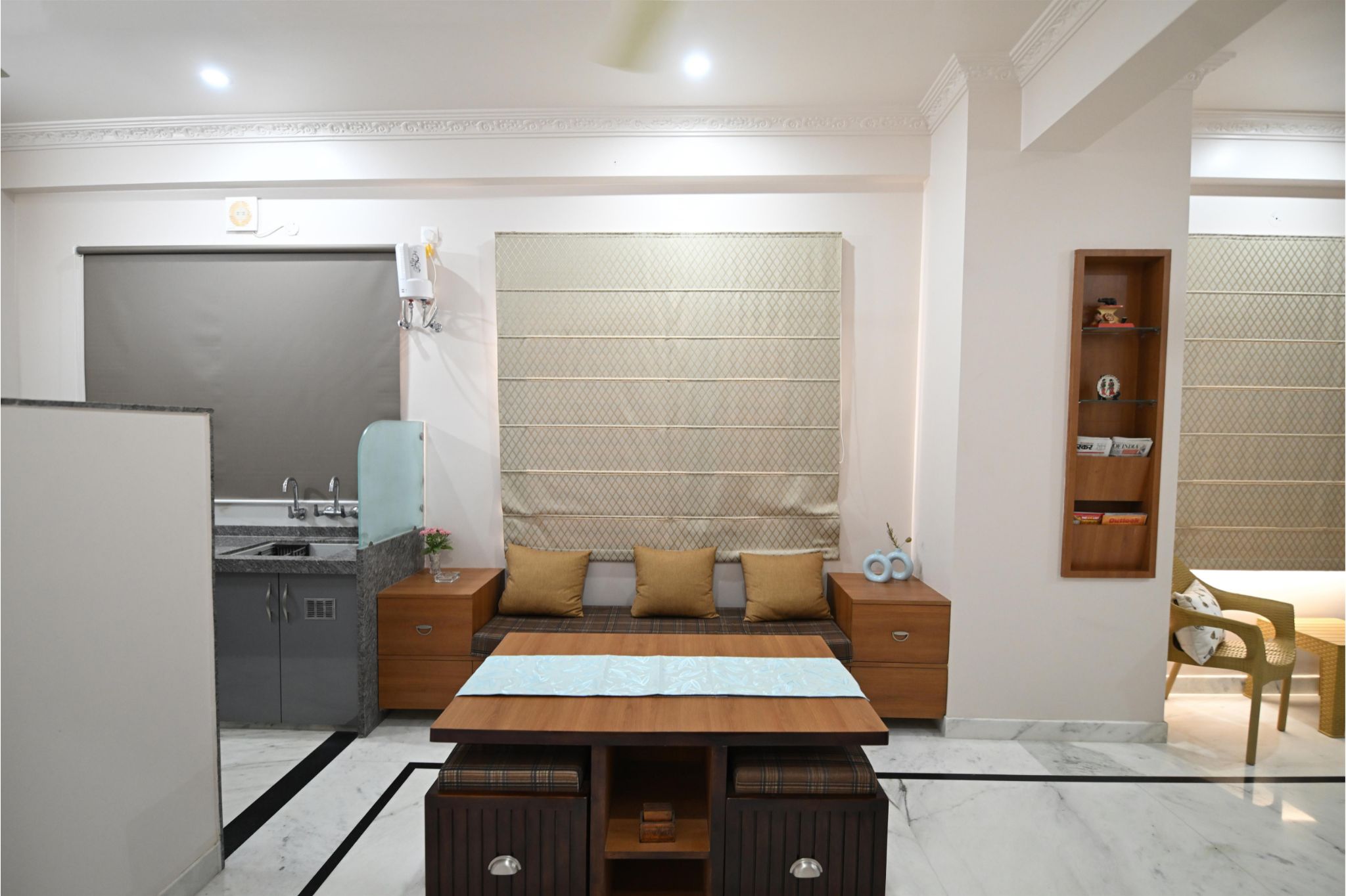 Hotel RoomsThe Two Room Suite offers an expansive and luxurious experience. It features a separate bedroom and living area, along with a full kitchen equipped with modern appliances. The suite is designed with contemporary decor and provides amenities such as flat-screen TVs, high-speed internet, and a spacious work desk. Ideal for extended stays, it ensures a comfortable and convenient home-like atmosphere with premium toiletries in the stylish bathroom.₹ 3,500 per night -