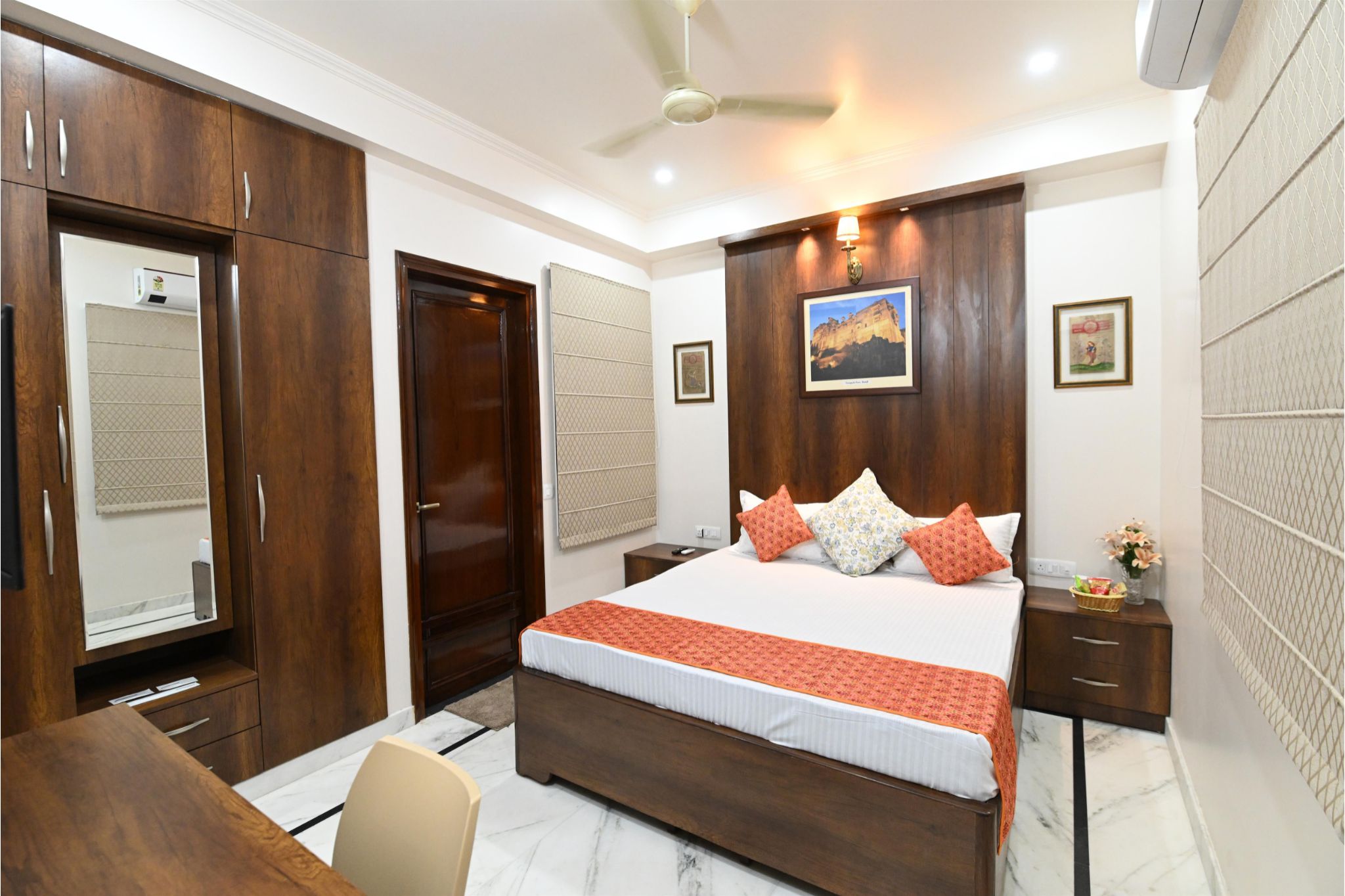 Hotel Rooms, StudiosThe Single Room Suite offers an expansive and luxurious experience. It features a separate bedroom and living area, along with a full kitchen equipped with modern appliances. The suite is designed with contemporary decor and provides amenities such as flat-screen TVs, high-speed internet, and a spacious work desk. Ideal for extended stays, it ensures a comfortable and convenient home-like atmosphere with premium toiletries in the stylish bathroom.₹ 2,590 per night -